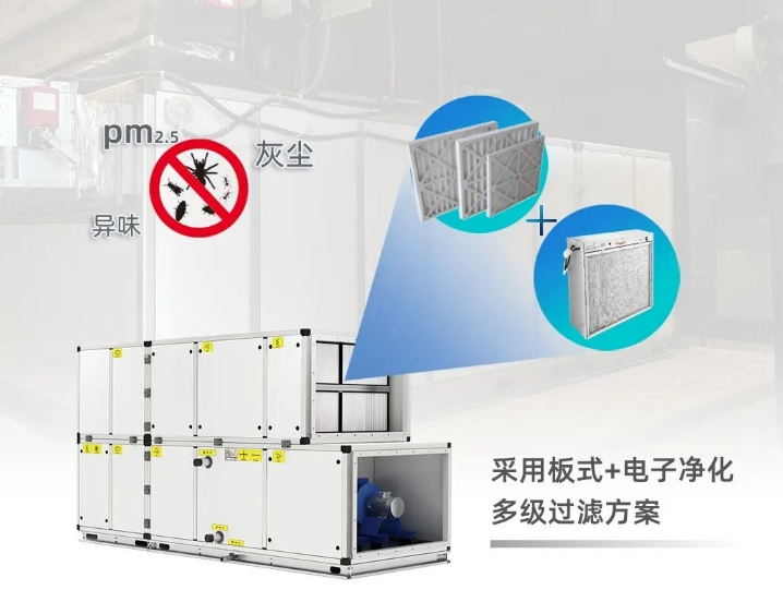 机组采用板式+电子净化的多级过滤方案,有效阻隔灰尘和颗粒物,确保进入室内的空气清洁清新,有效保障了商场内部空气的新鲜度与洁净度,为消费者营造舒适健康的购物休闲空间,也为商业运营提供了可持续的发展路径。