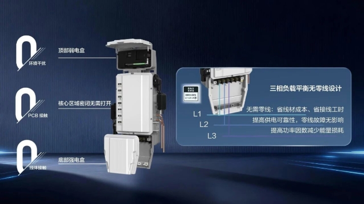不同于传统中央空调的内部交流供电平台设计,美的MDV9无界多联机专为光伏建筑场景量身打造全直流架构,电气端创新采用三相负载平衡无零线方案,支持交直流混动智能分配,既从根源规避了零线错接、漏接的故障风险,更具备原生光伏直连接入能力。