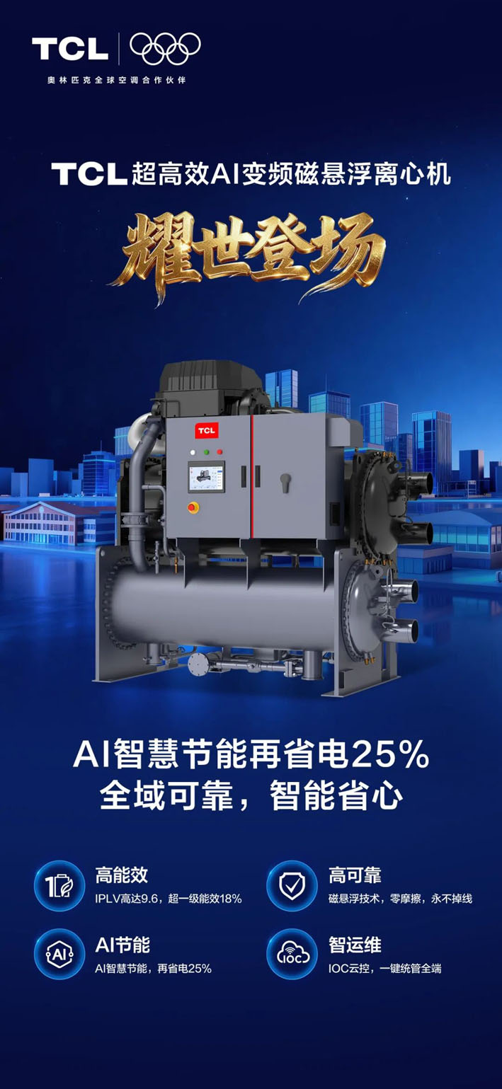 TCL超高效AI变频磁悬浮离心机的全新上市,不仅是技术创新的又一里程碑,更是一场关于智慧节能的技术革命,是行业转型升级的生动缩影。这款凝聚了TCL深厚技术积淀的创新产品,将为建筑行业的“碳达峰、碳中和”之路,注入强劲动能。