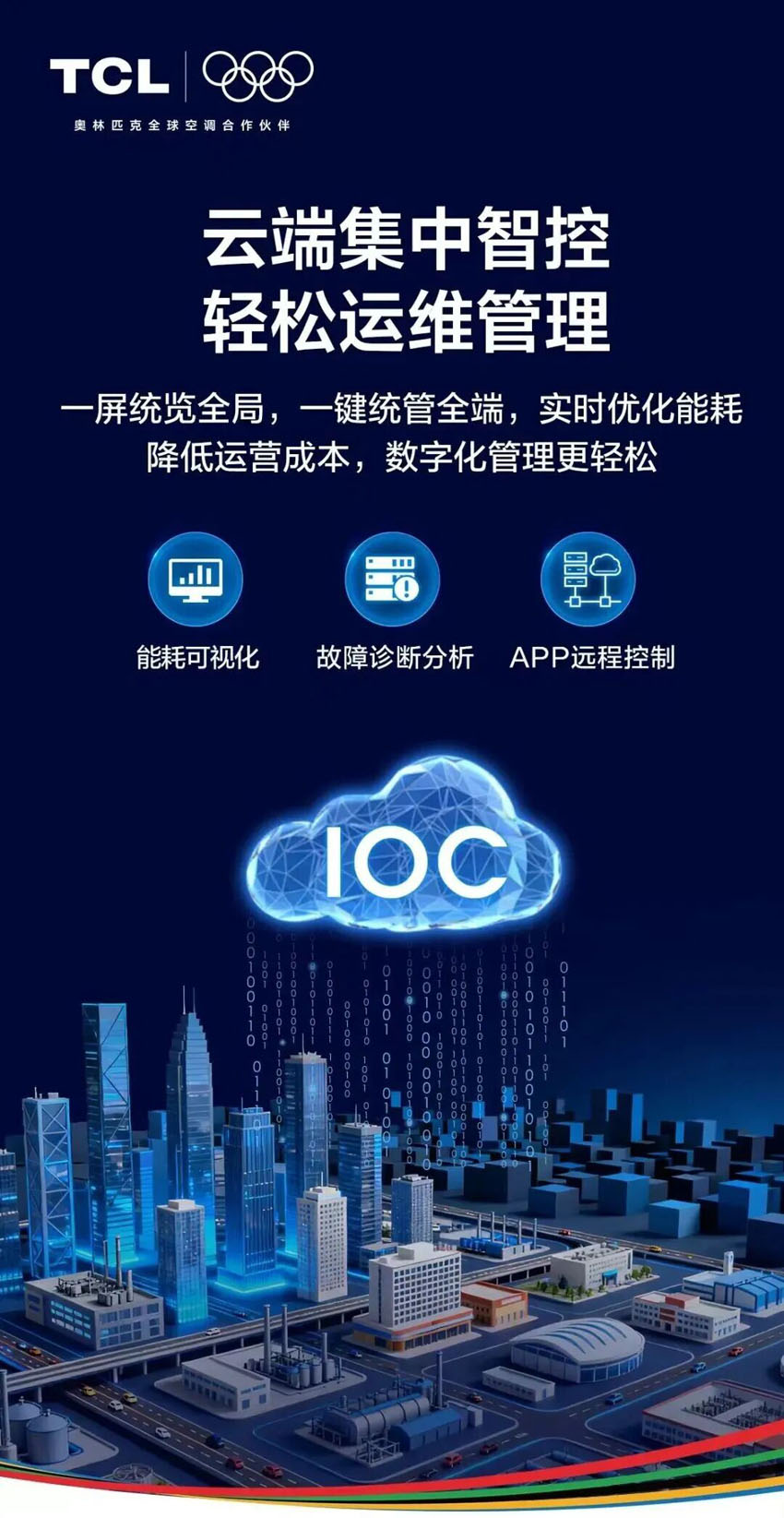 在智能管理方面,TCL超高效AI变频磁悬浮离心机通过云端集中智控,一屏统览全局,一键统管全端,能够实时优化能耗,降低运营成本,轻松实现能耗可视化、故障诊断分析、APP远程控制,让管理更便捷。