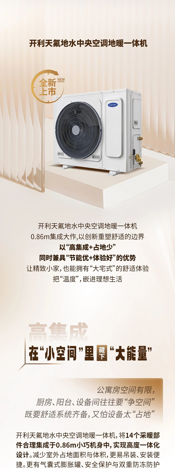 重磅新品|开利天氟地水中央空调地暖一体机,精致公寓新范式