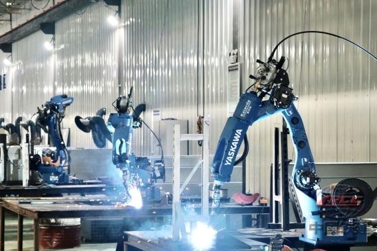 此外,该基地注重推进生产技改,目前投入的四枪角钢法兰自动焊接、支架底座集成组对焊接机器人、型钢弯曲机等设备,以及正在研发的四轮转向运输升降装备等自动化施工装备,改变了传统施工生产以人力为主的现状,以新技术、新工艺、新装备实现降本增效。