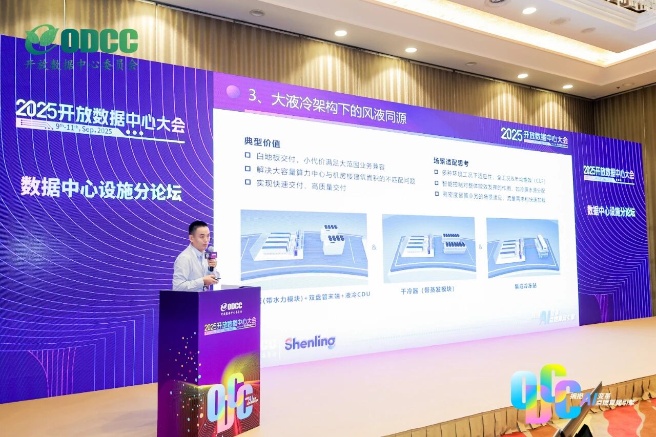 申菱数据中心高级架构师孙地先生发表《全预制大液冷系统应用实践》的主题演讲,他深入解析了在AI算力爆发式增长背景下,传统散热方案在效率、能耗与密度方面面临的核心瓶颈,并系统介绍了申菱创新研发的"全预制大液冷系统"综合解决方案。该方案通过液冷技术与预制化建设的深度融合,实现了数据中心的高效散热与快速部署,显著提升算力密度与能源使用效率,为高功率AI服务器提供稳定可靠的运行环境。