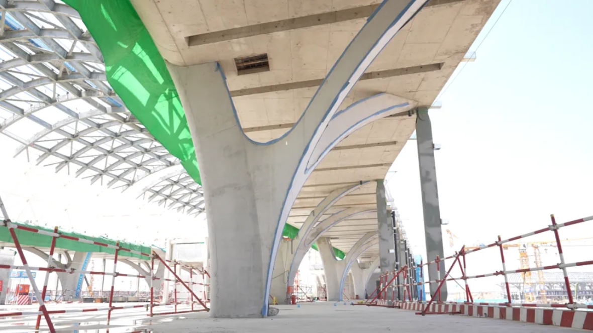 航站楼指廊采用164棵混凝土开花柱