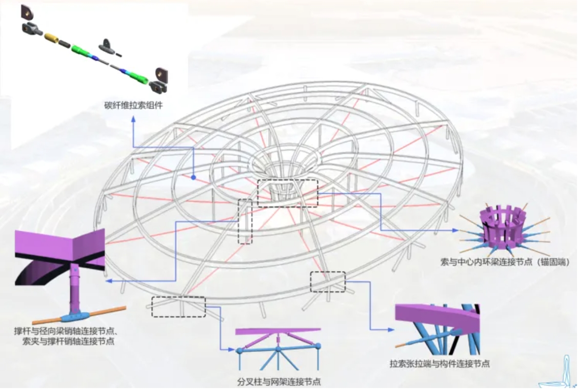 自主研发全球首个全碳纤维索车幅式张弦结构
